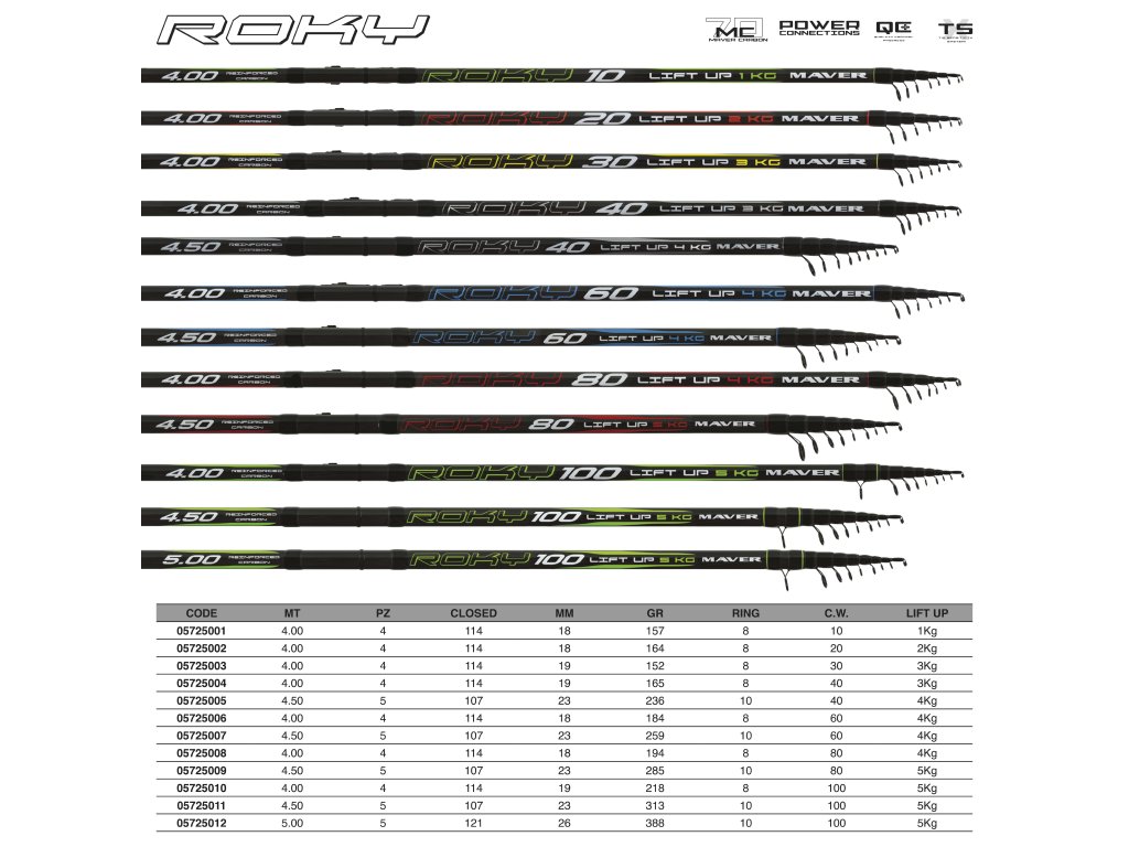 Univerzální řadu Rocky lze použít pro různé rybářské situace podle cílové ryby a hmotnosti používané zátěže.
